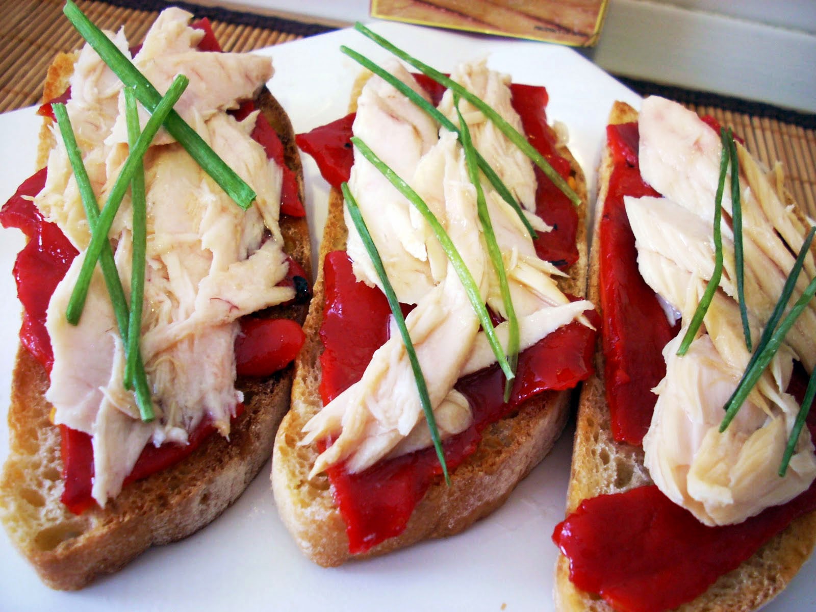 Tosta de Bonito del Norte y ensalada de pimientos.